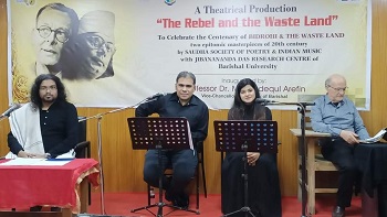 Saudha, Society of Poetry and Indian Music is dedicated to the study of music and the renovation of techniques constantly in order to create new audience of classical and semi-classical music(mainly Indian) through gluing it up seamlessly with other serious forms of art (e.g poetry, classical dance) that can, as a whole, signify, interpret, intensify and complement the mood and the meaning of each other. The society is in a journey to develop a true Western Gharana (school) of Indian classical music both through unique and connecting world-class performances and importantly, establishing a philosophical framework to conform these new, innovative and more engaging way of performances. It delves into the amalgamation of vocal and instrumental music (both oriental and occidental), lyrical poetry, theatrical glimpses of musically exuberant painting, different form of highly evocative dances and other relevant art forms.